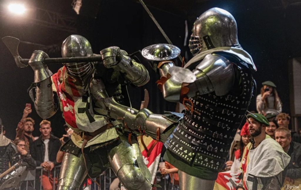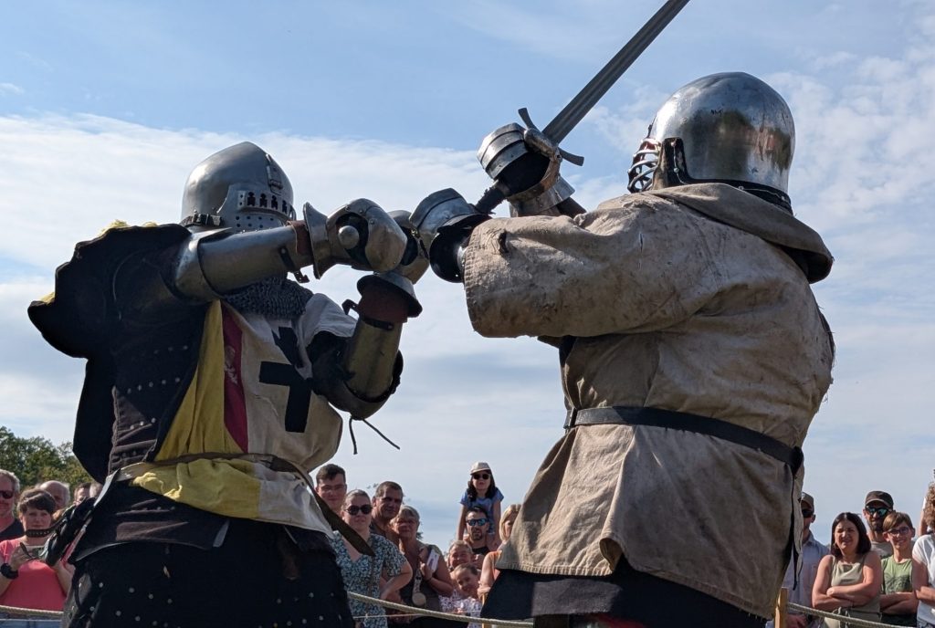 Les combattants s’affrontent en armure complète, selon des règles strictes de sécurité et de fair-play, mêlant authenticité historique et exigence physique.